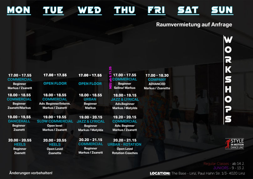 Dies ist unser aktueller Stundenplan für die kommende Saison.